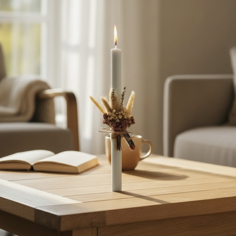 Κάθε λαμπάδα δημιουργείται χειροποίητα, με έμφαση στη λεπτομέρεια και στη διακριτική κομψότητα που χαρακτηρίζει το brand. Οι προσεγμένες χρωματικές επιλογές και τα φυσικά στοιχεία διακόσμησης δημιουργούν μια αρμονική σύνθεση που αποπνέει ζεστασιά, ηρεμία και αυθεντικότητα.